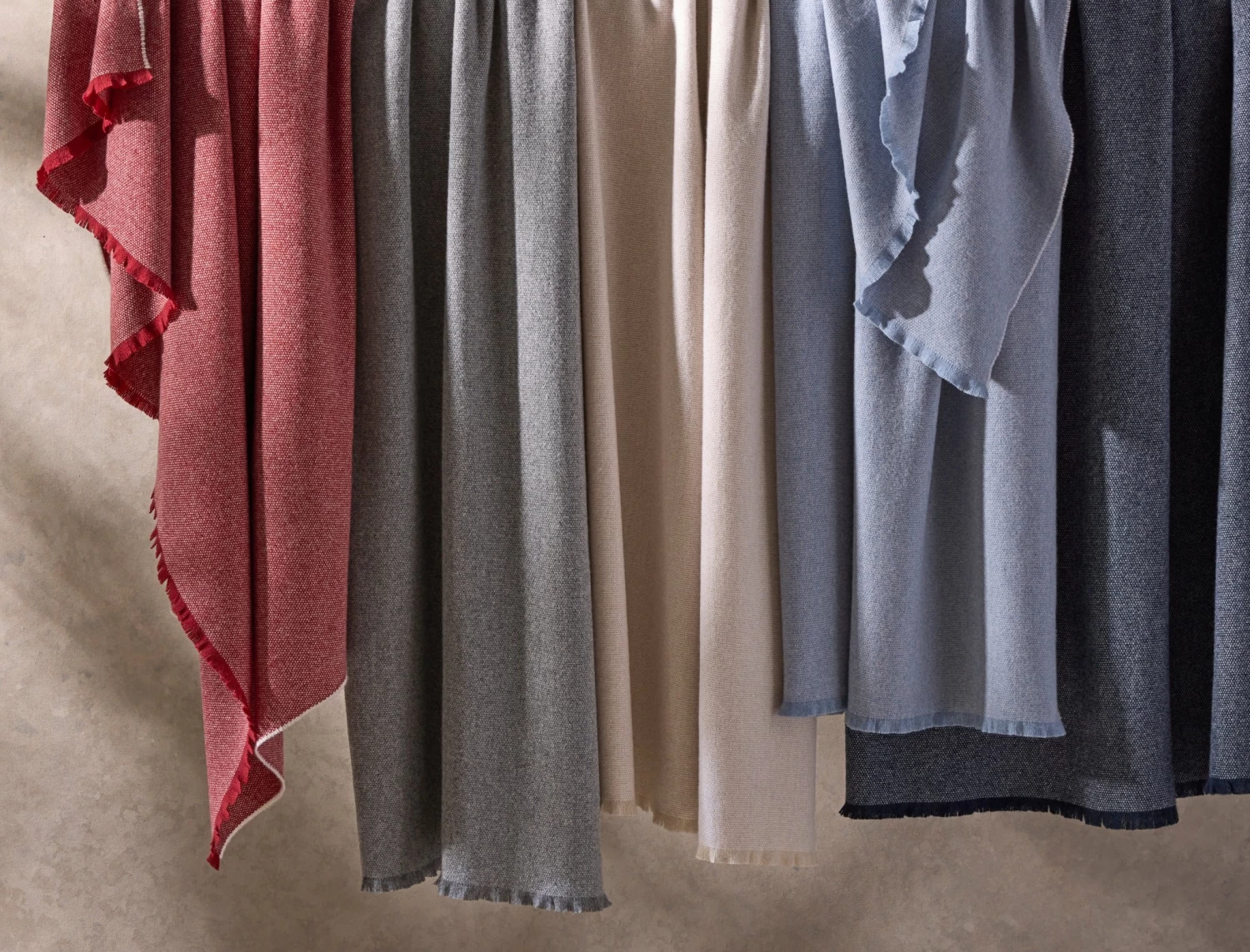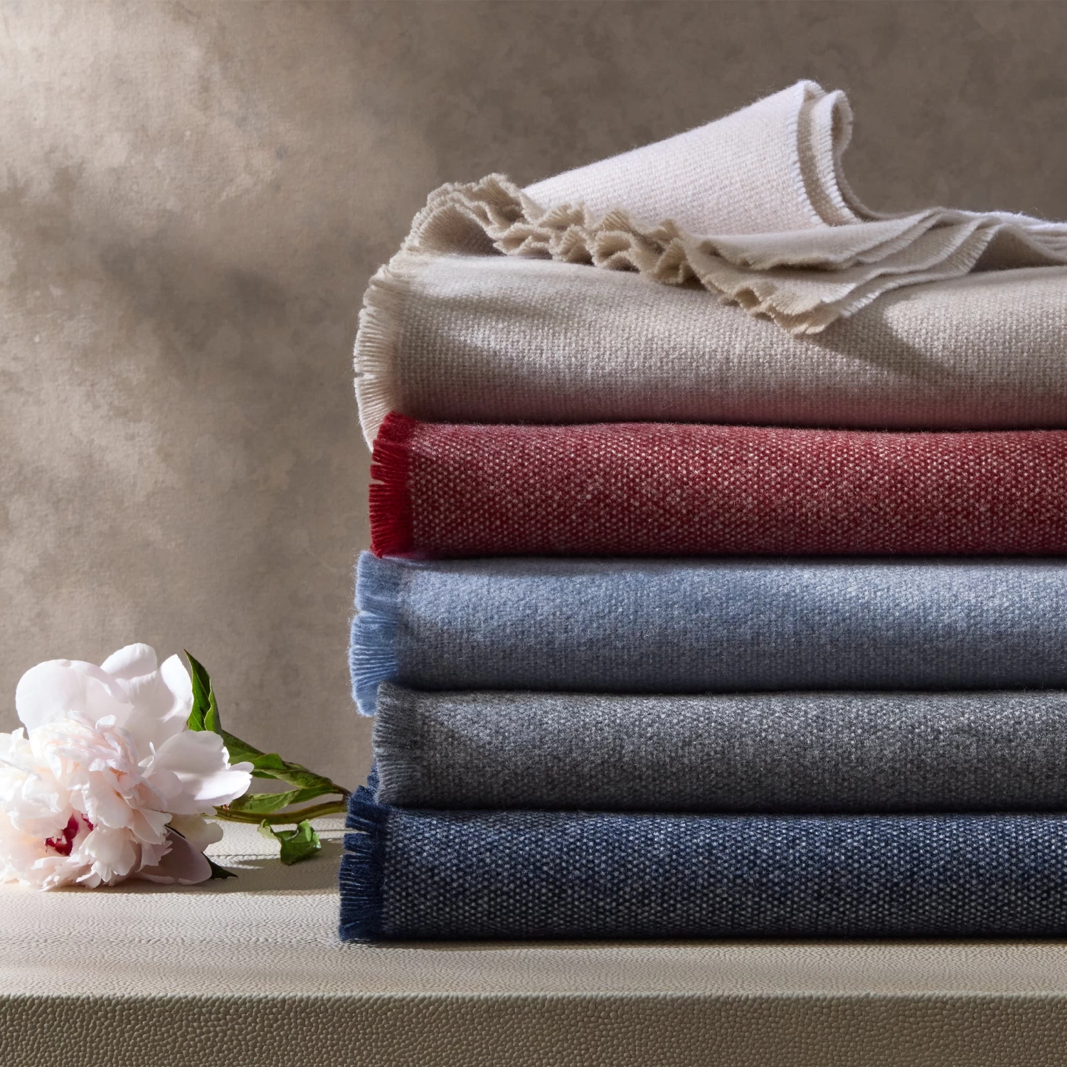 - Wool and cashmere blend throw with two tone weave design woven in Scotland and finished with eyelash fringe detail