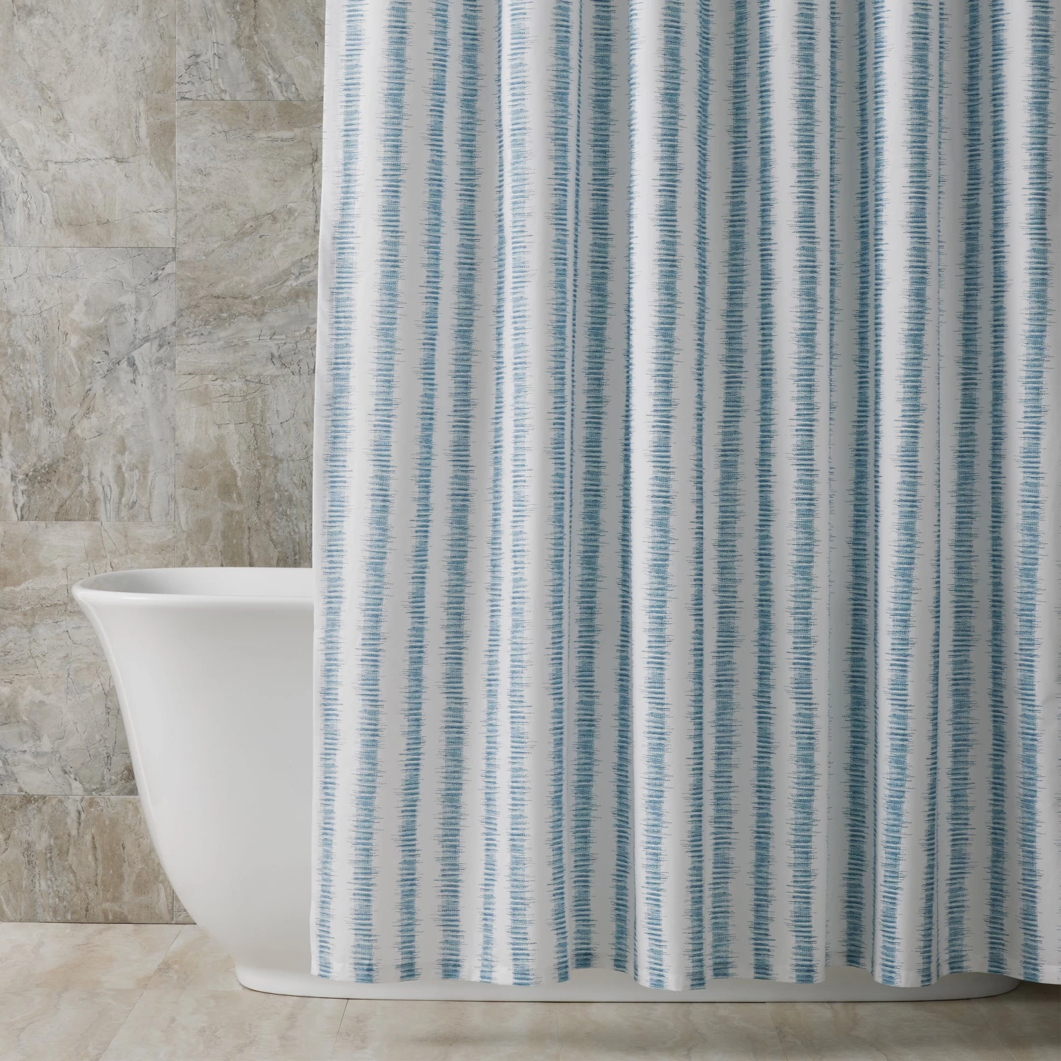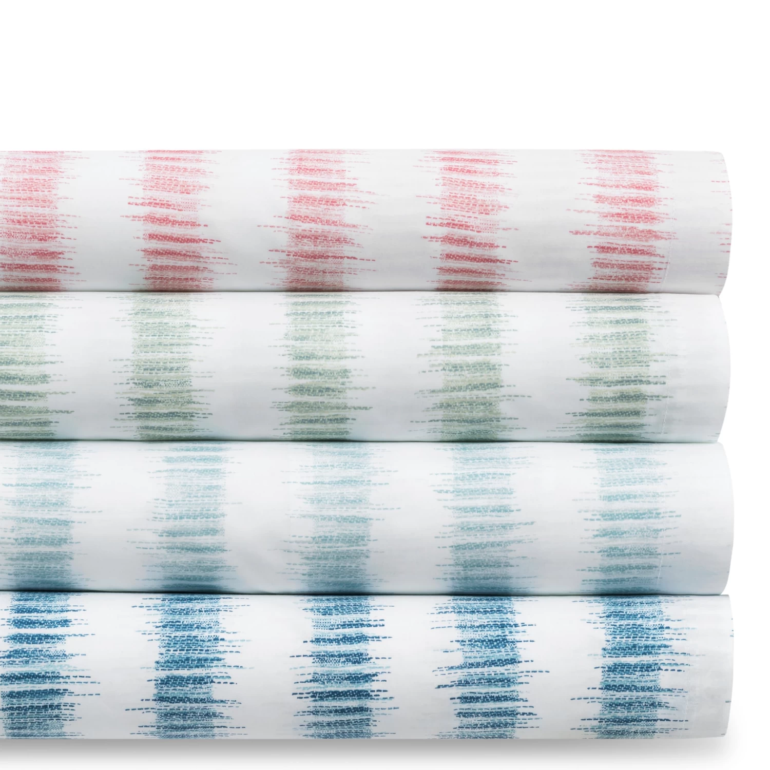 - Schumacher printed ikat style stripe on Luca percale.