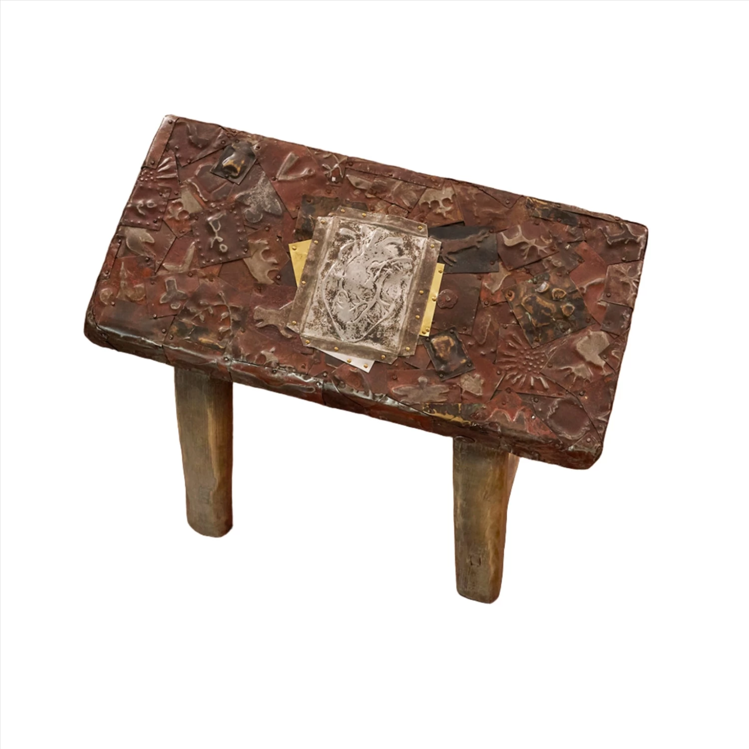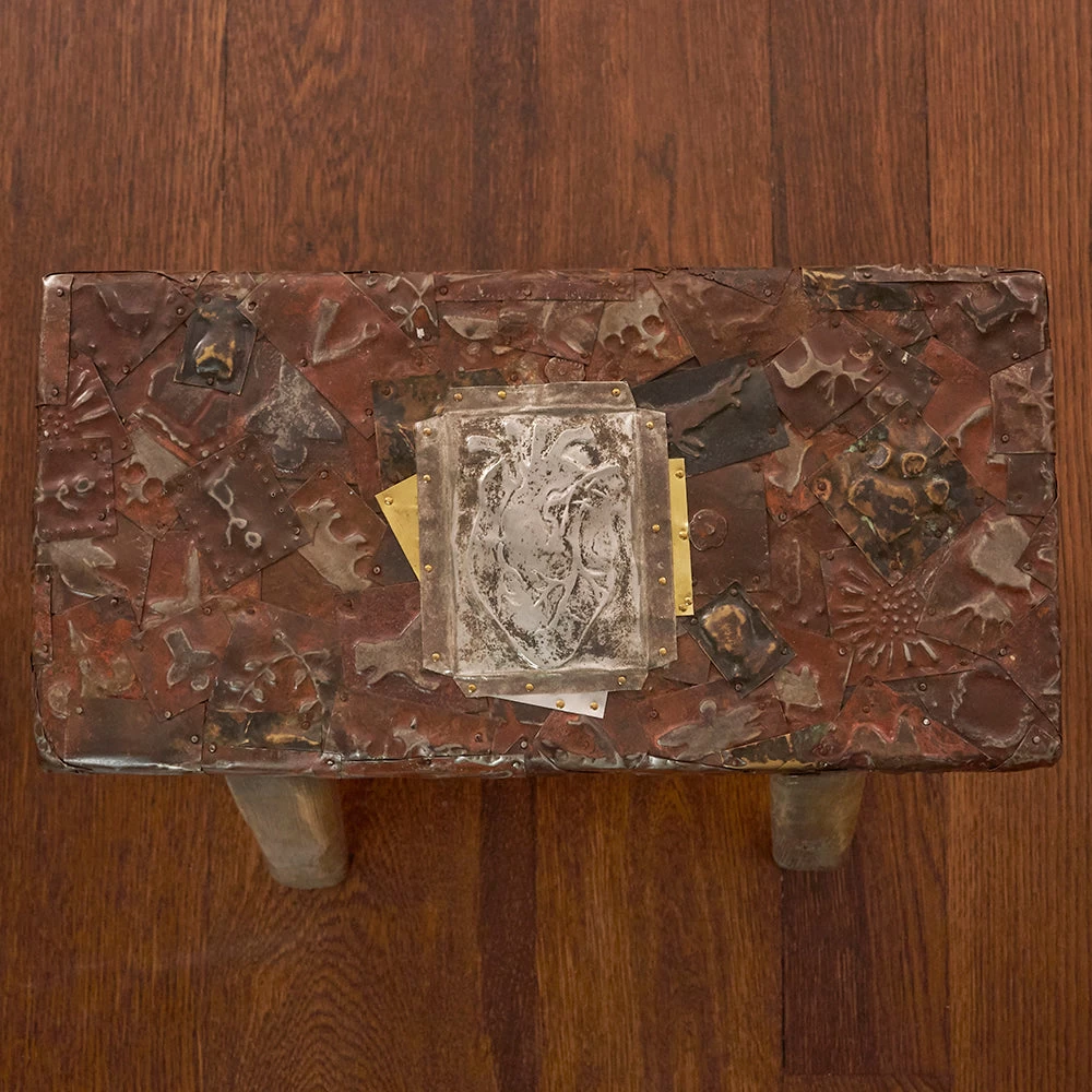 - Covered with punched iron, tin and brass hand made milagros