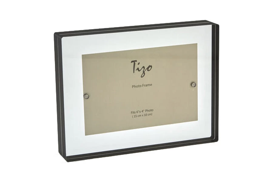 - Acrylic clear block frame with black border accent and magnetic closure