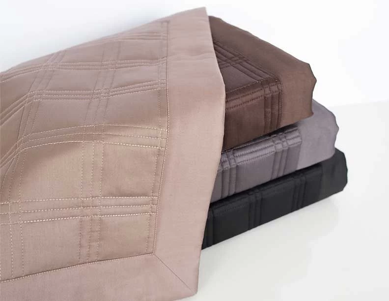 A contemporary take on a classic design, Block Quilted coverlets and shams from Home Treasures are quilted in the USA on Italian made 100% Egyptian cotton sateen.