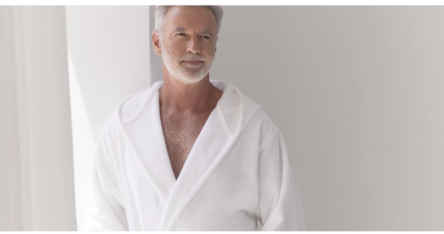 - Unisex robe with velour front/terry interior. Luxury meets livability. Ultra subtle diamond weave sheared to create lush velour front. Reverse is made of absorbent terry. Soft against the skin. Belted with sleek, clean hem. Spa like robe at home.