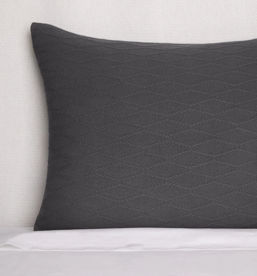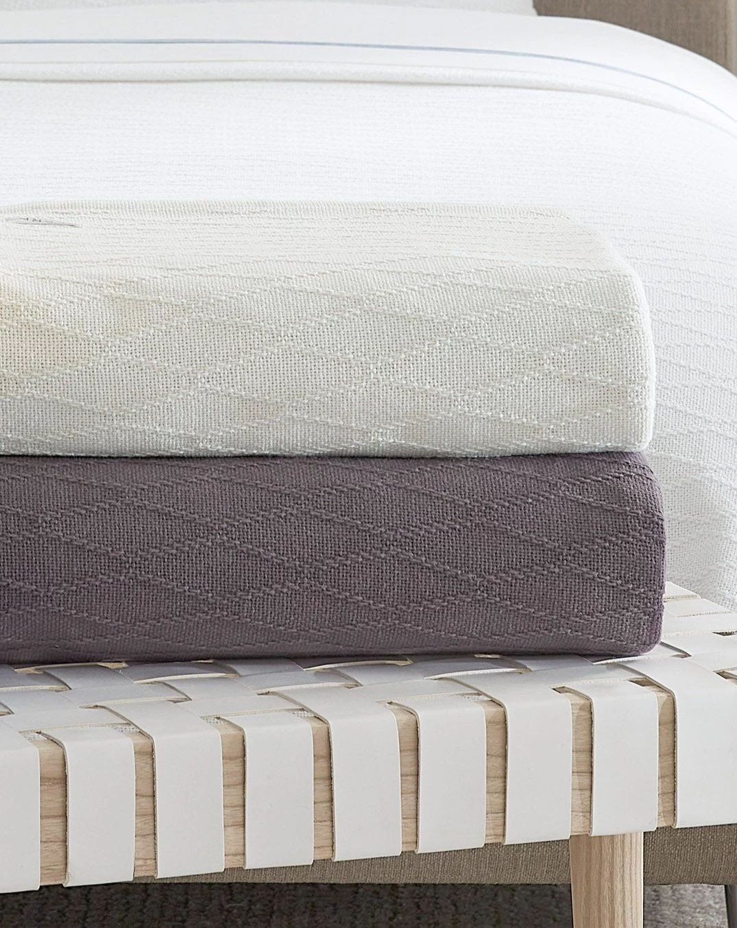- Cozy and inviting cotton blanket and shams with intricate knotted net design