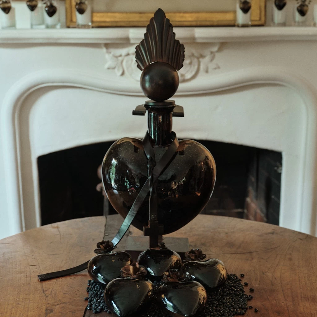 - Larger than life chocolate mouth-blown glass heart topped with aura that transcends. Captures the passion, prominence, provocation of Barboglio