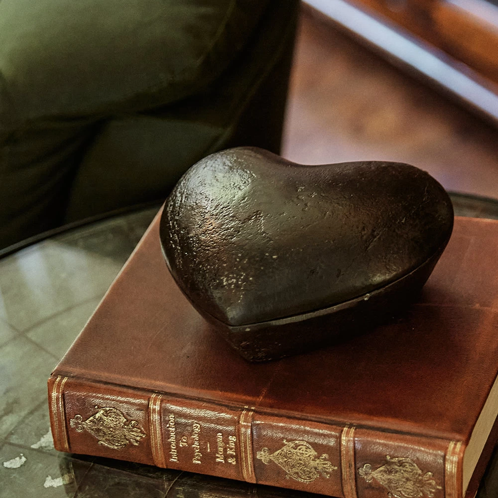 - Extra large sumptuous wax cast iron heart box with rich suede lining