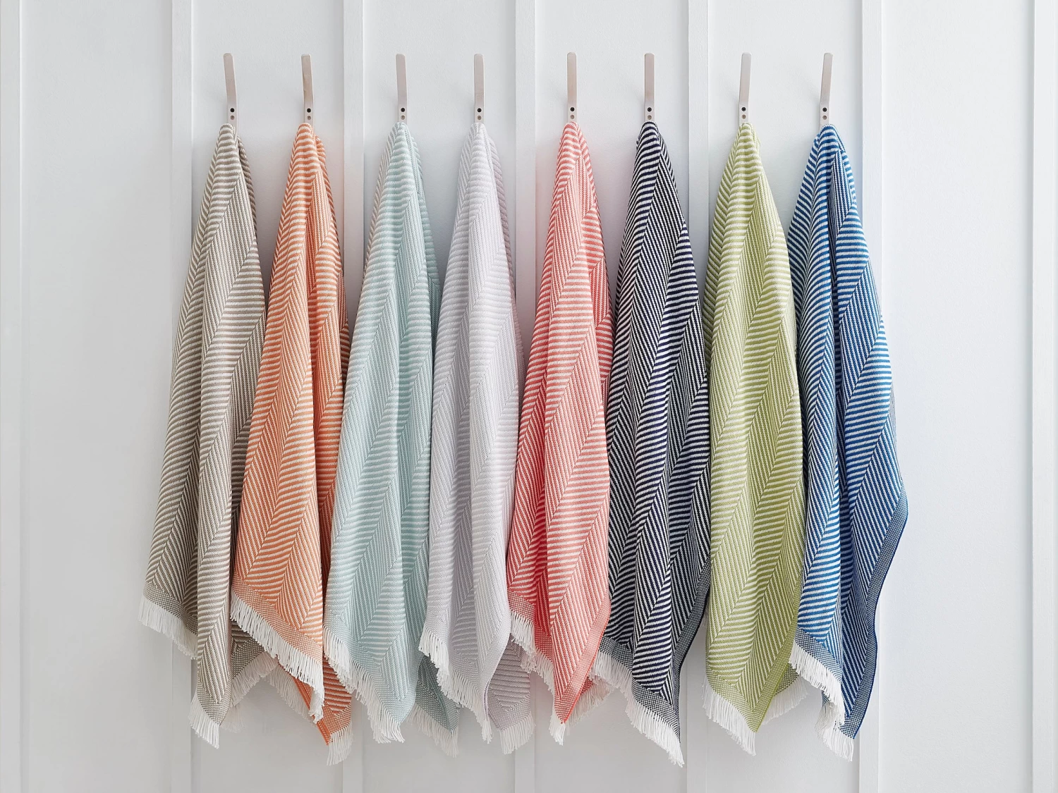 - Colorful and white cotton threads are woven into a playful and chic lightweight herringbone throw with fringe on top and bottom