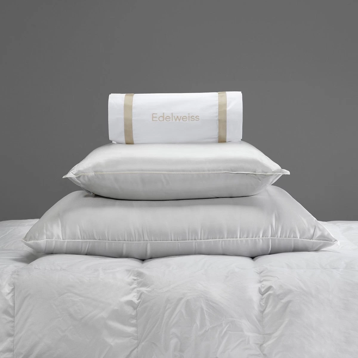 When only the best will do, Matouk’s Edelweiss Pillows are the solution. The most extraordinary down found on the planet, eiderdown is harvested by hand from abandoned nests of the female eider duck. Superior over all downs in lightness and insulation, eiderdown continually adjusts to your body heat and moisture release. Each of these exquisite pillows are made to order, and if taken care of properly, can be passed down for generations.
