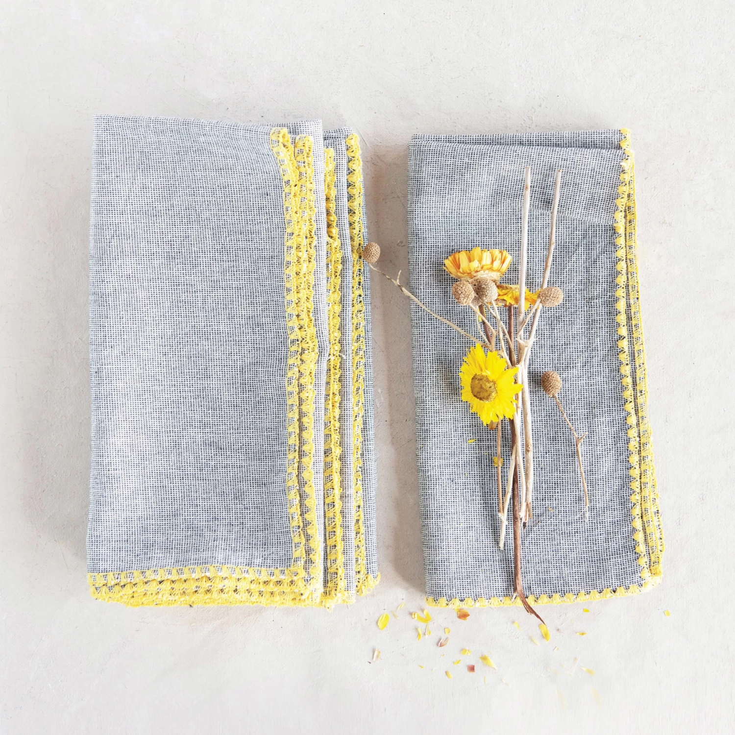 Be the first to review “Embroidered Edge Cotton Napkin Set Of 4 – Grey/Yellow” Cancel reply
