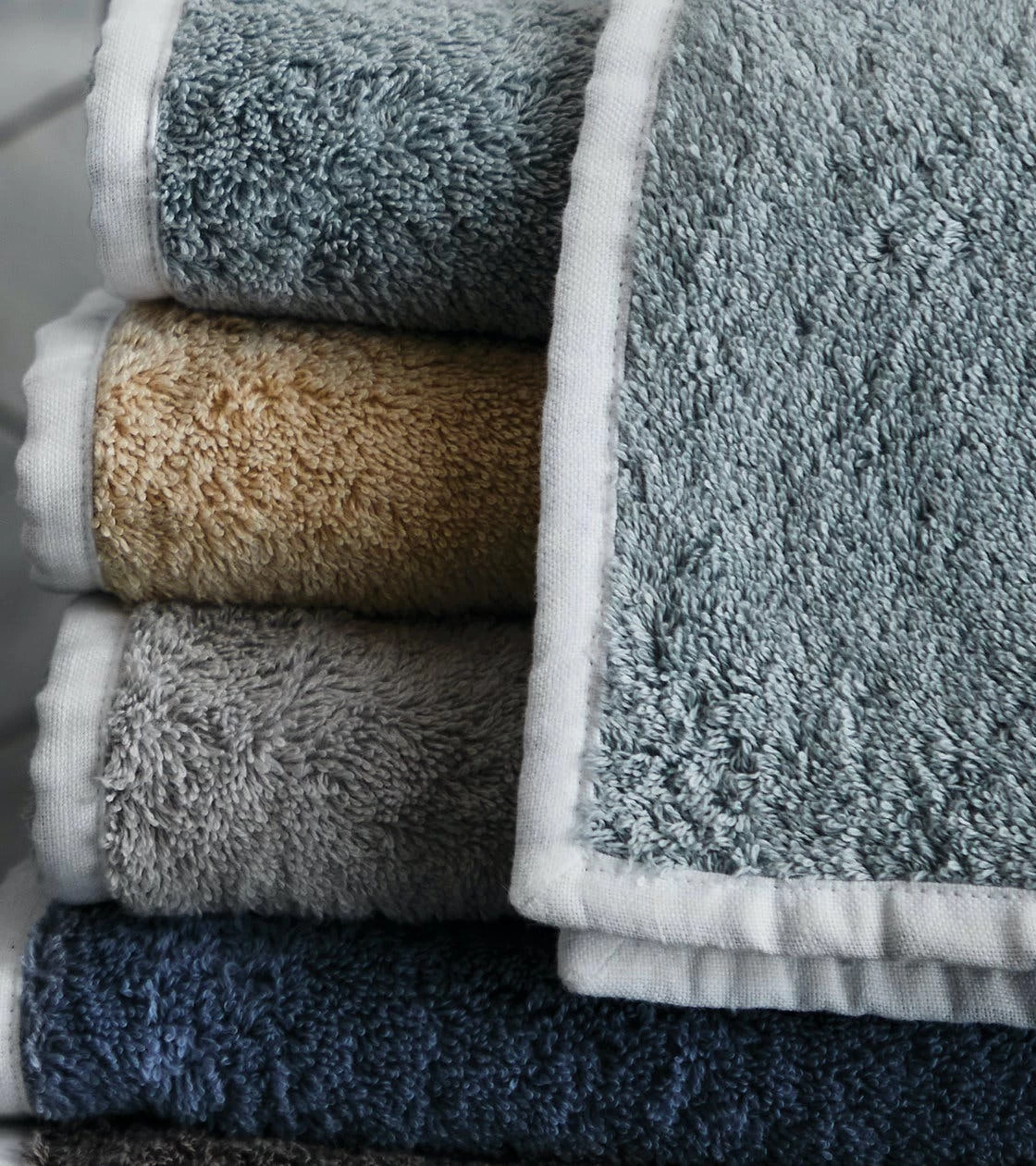 - Cairo cotton terry detailed with colorful linen piping. Casual and modern.