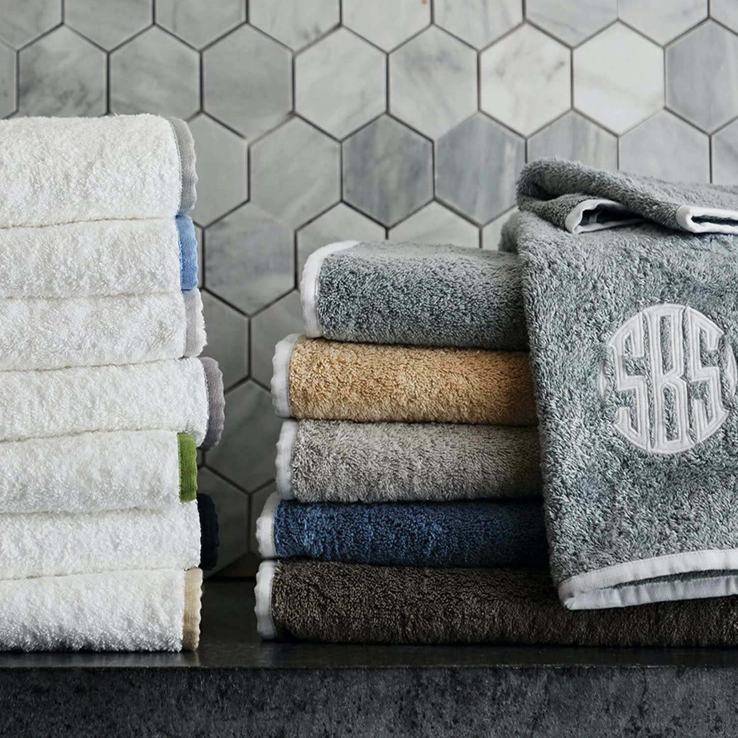 - Enzo towels can be monogrammed with both embroidery or appliqué.