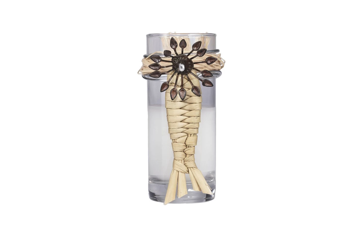Care: Trim wick and remove raffia before burning. Never leave a lit flame unattended, or allow the candle to burn too low, as the glass can become hot and break.