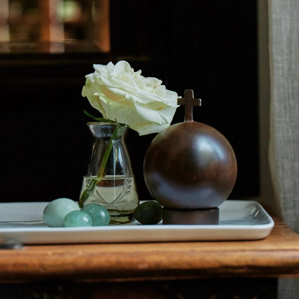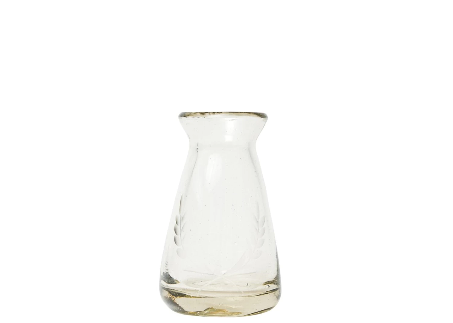- Mouth blown glass vase with laurel etching wreath