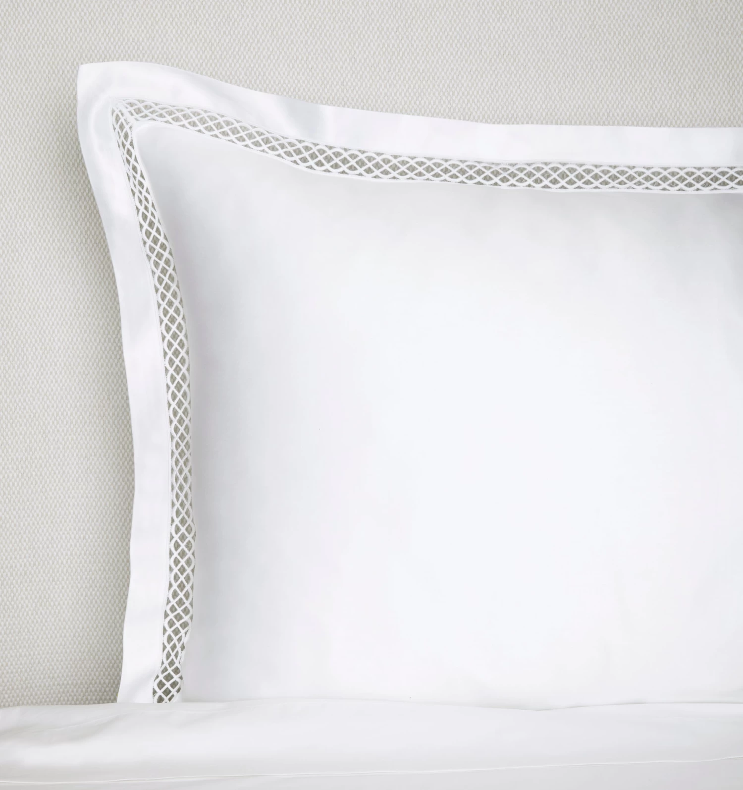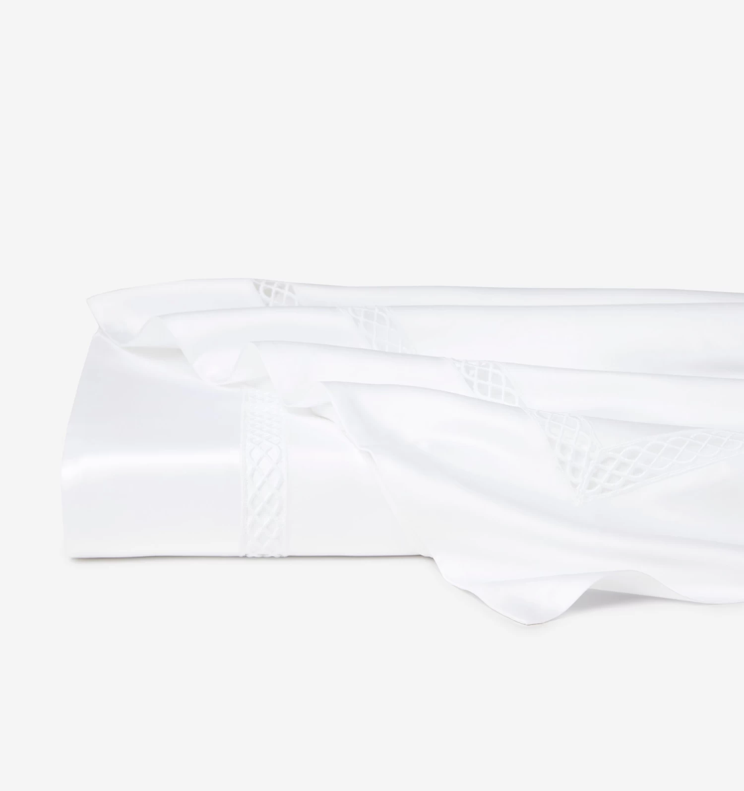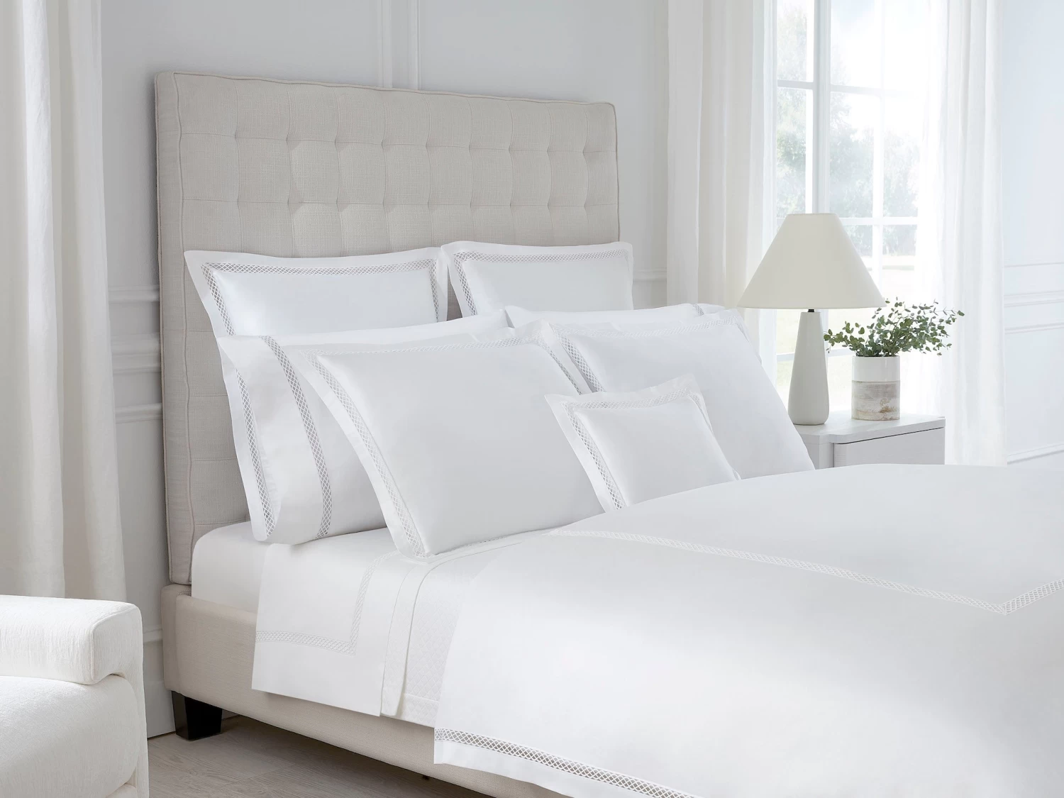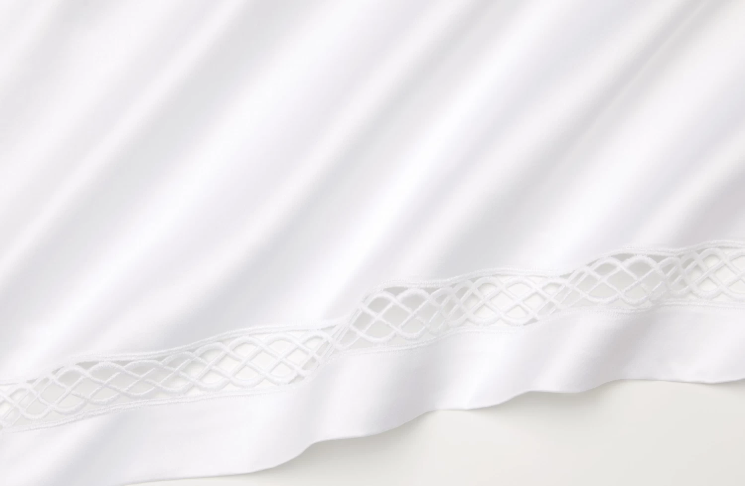 - Giza 45, finest of all the world’s cotton. Spun by expert Italian craftsmen into a super-fine yarn that is woven into a sleek, supple fabric. Smooth and sleek with a subtle sheen. Framed by a macrame lace inset that traces a border around the base sateen fabric. Ornate and refined.