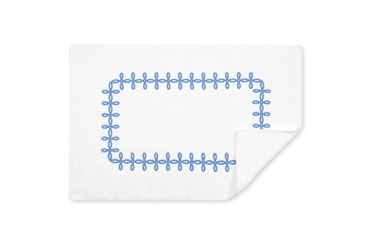 - Tub mats have embroidery in a framed pattern