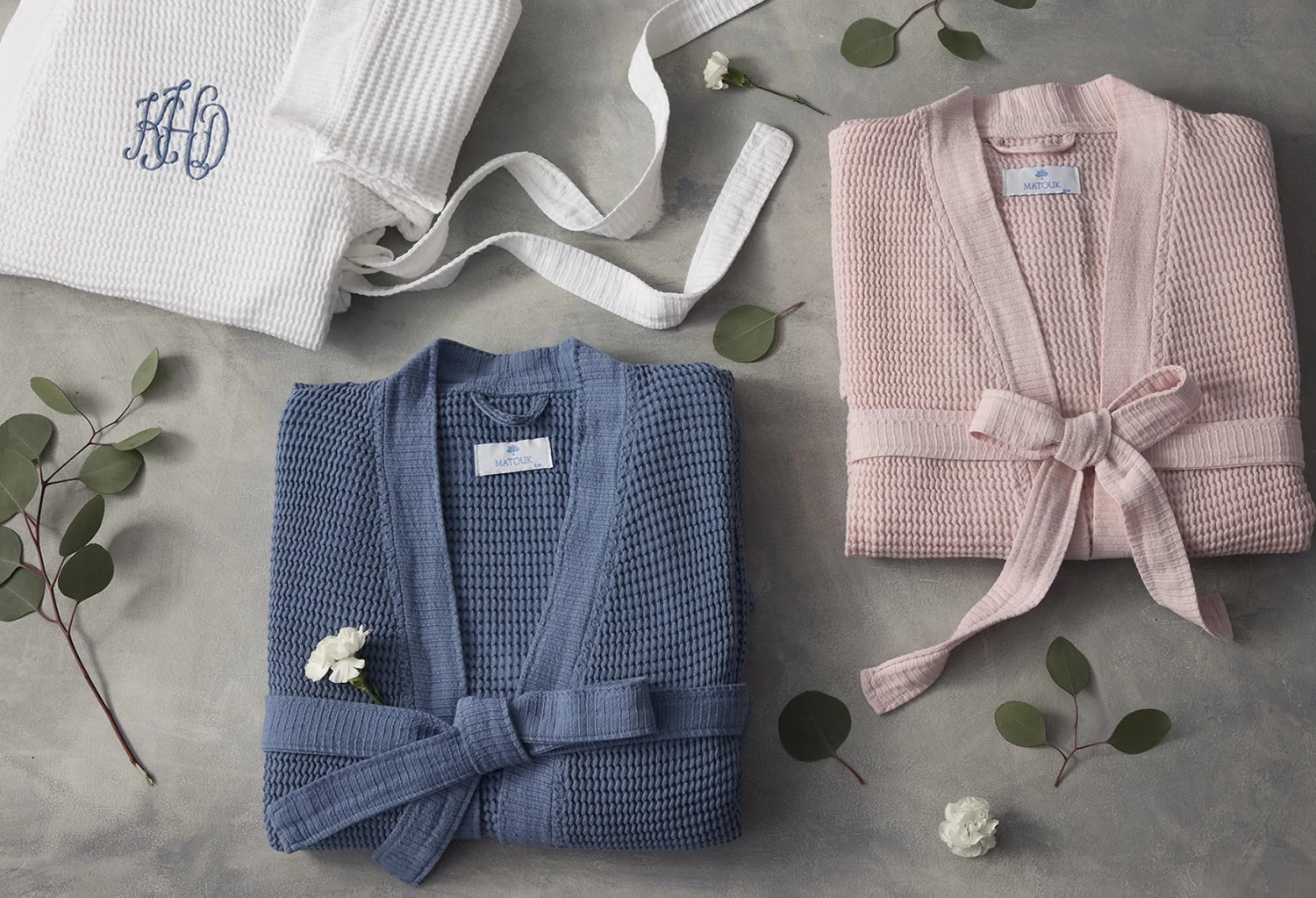 - Turkish waffle weave bath robe that is uniquely soft and supple.
