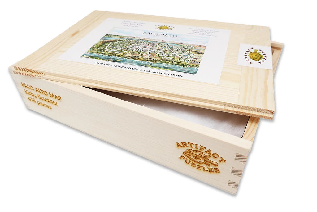 Originally started in Seattle, WA as an experiment in the economics of micro-manufacturing, Artifacts Puzzles is small, artisanal puzzle company now based in Menlo Park, CA, just south of San Francisco. Using environmentally-friendly plywood and soy-based inks, Artifacts Puzzles designs, crafts, and sells unique, artsy laser-cut jigsaw puzzles. With a diverse collection of art and design, these puzzles feature puzzle pieces that add challenge and charm to each puzzle. Artifacts Puzzles provide a rewarding past time to spend with family and friends.