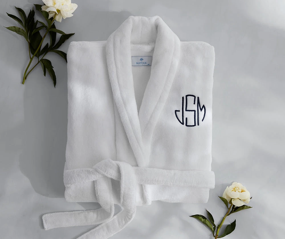 Personalize your Matouk robe with custom, hand-guided embroidery.