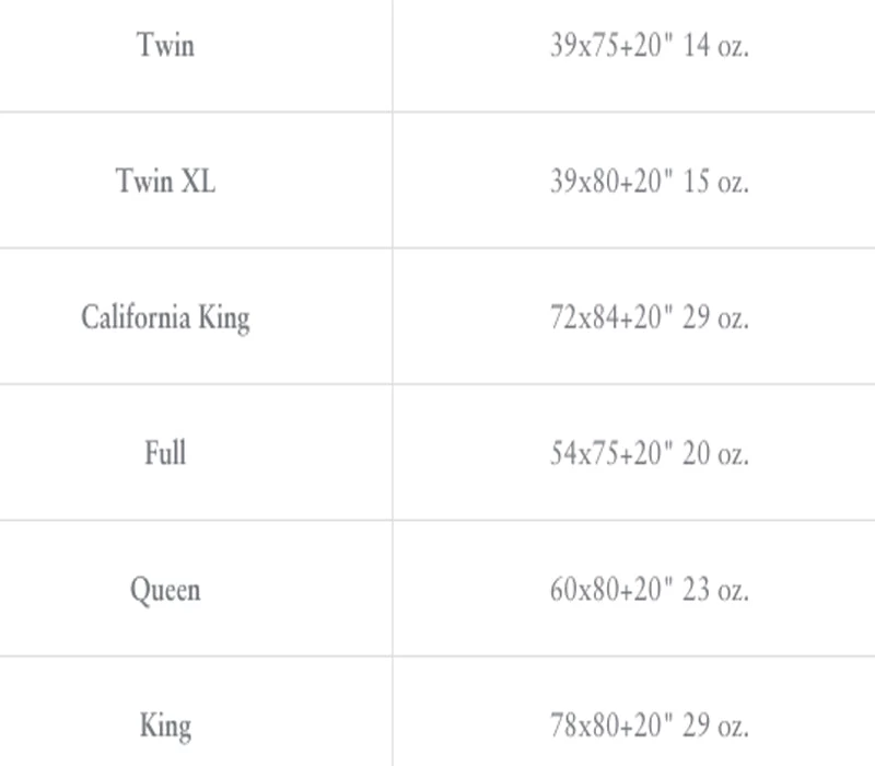 Sizes: Twin, Twin XL, Full, Queen, King, Cal King