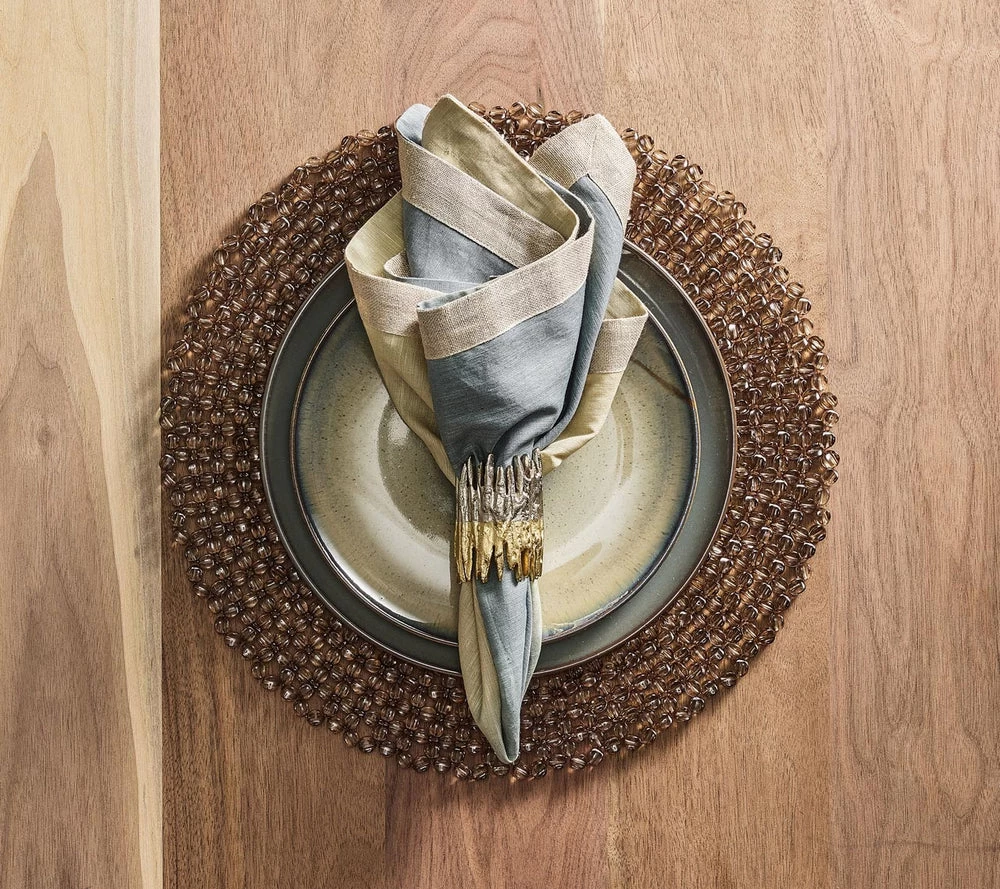 - Lustrous silver and gold napkin ring features a naturalistic design