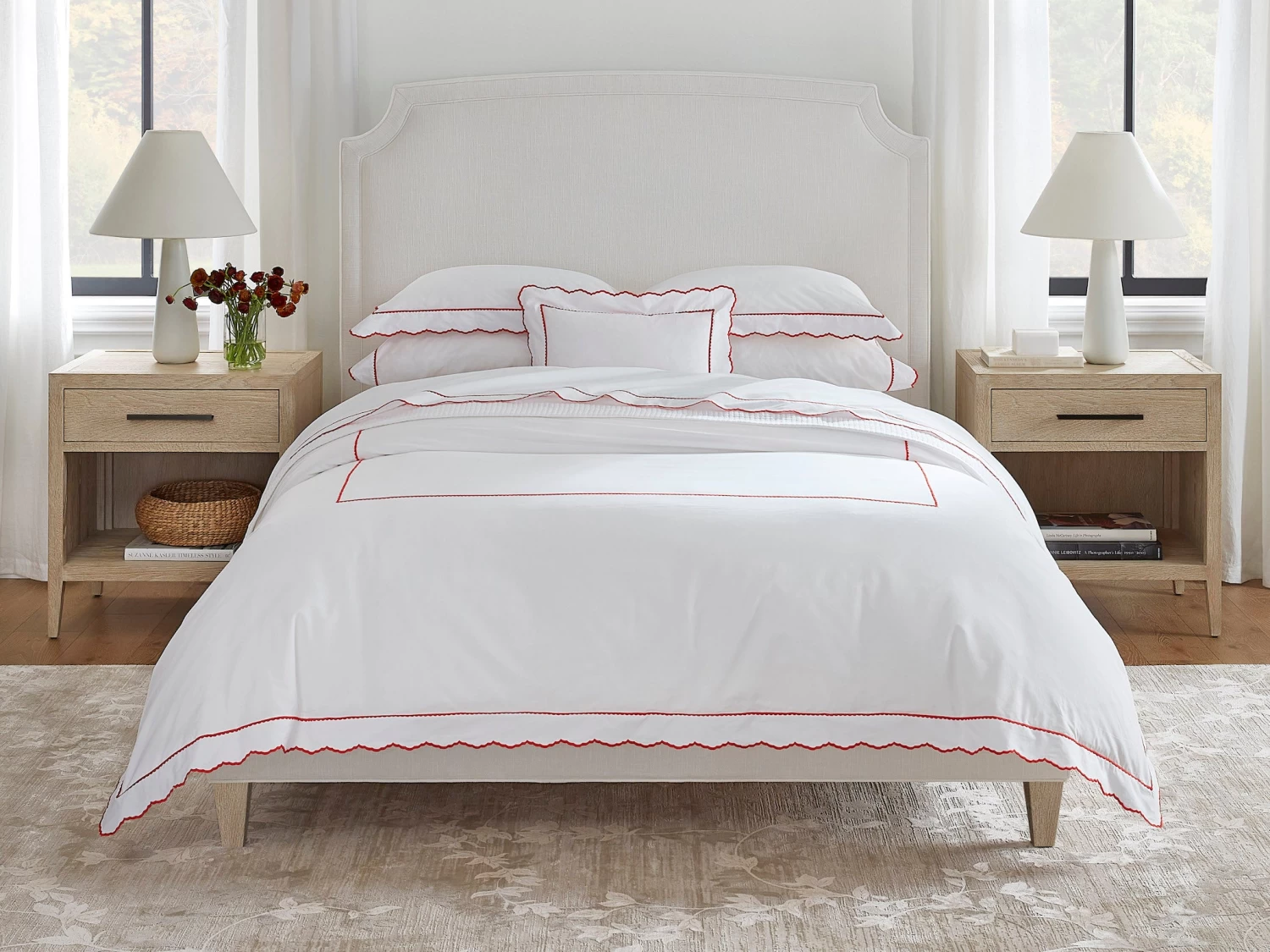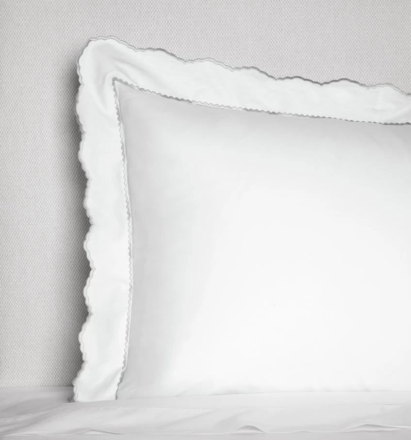 - Embroidered scalloped edges and lined satin stitch border on Sferra’s best selling Celeste percale. Elevating ease and chic refinement. Italian tailoring, supple drape, and remarkably smooth hand.