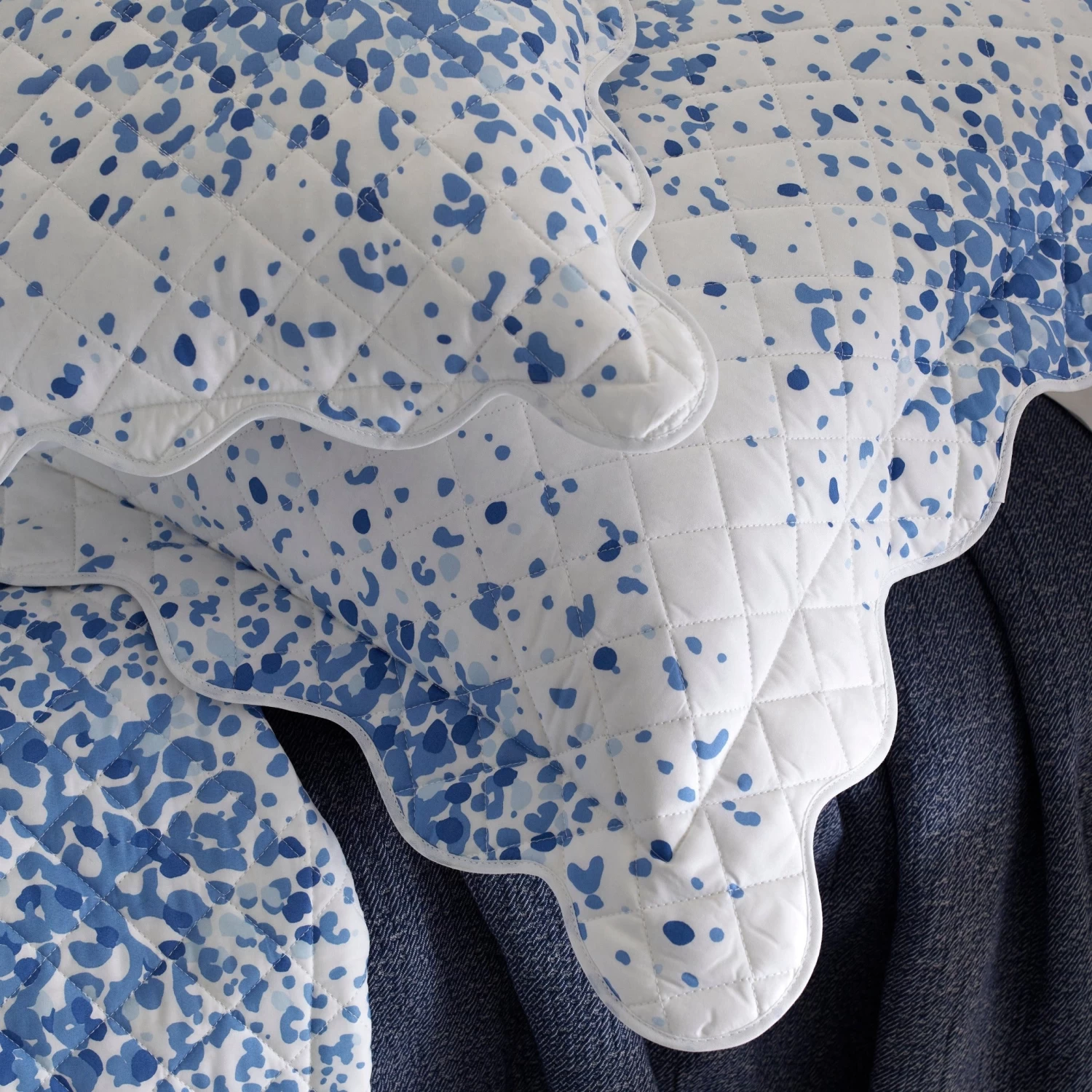 - Lulu DK’s iconic hydrangea inspired bedding print in azure blue printed on Matouk’s Luca luxury percale bedding and quilted in a 2″ diamond pattern.