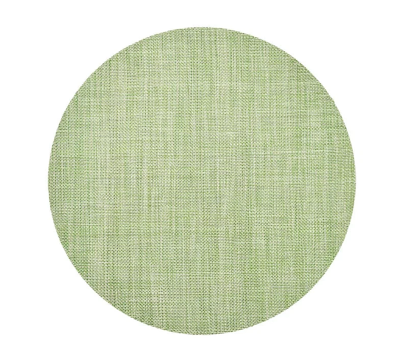 - Woven vinyl placemat with heathered appearance for look of raffia, and ease of care