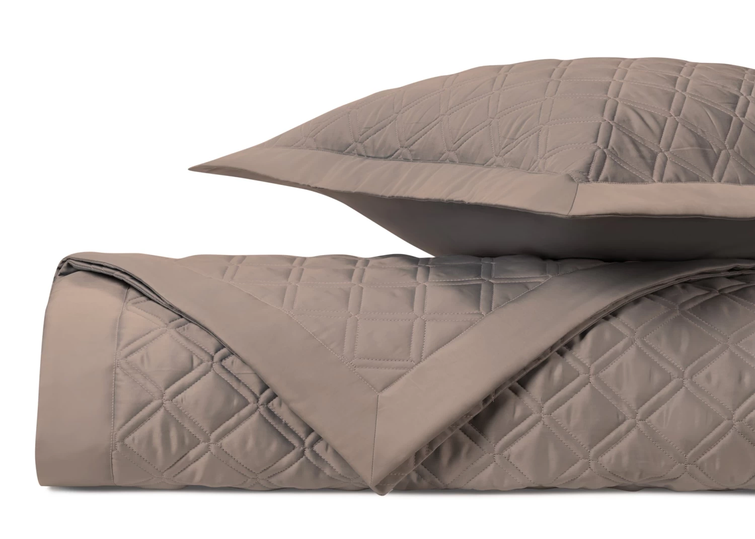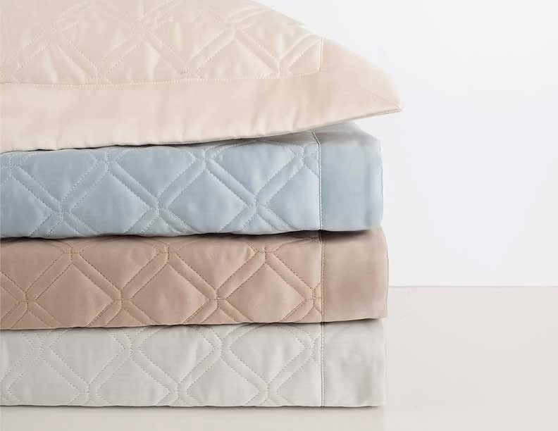 Classic diamond quilted design is framed with two rows of stitching for a timeless look. Renaissance coverlets and shams are available in an array of beautiful sateen colors.
