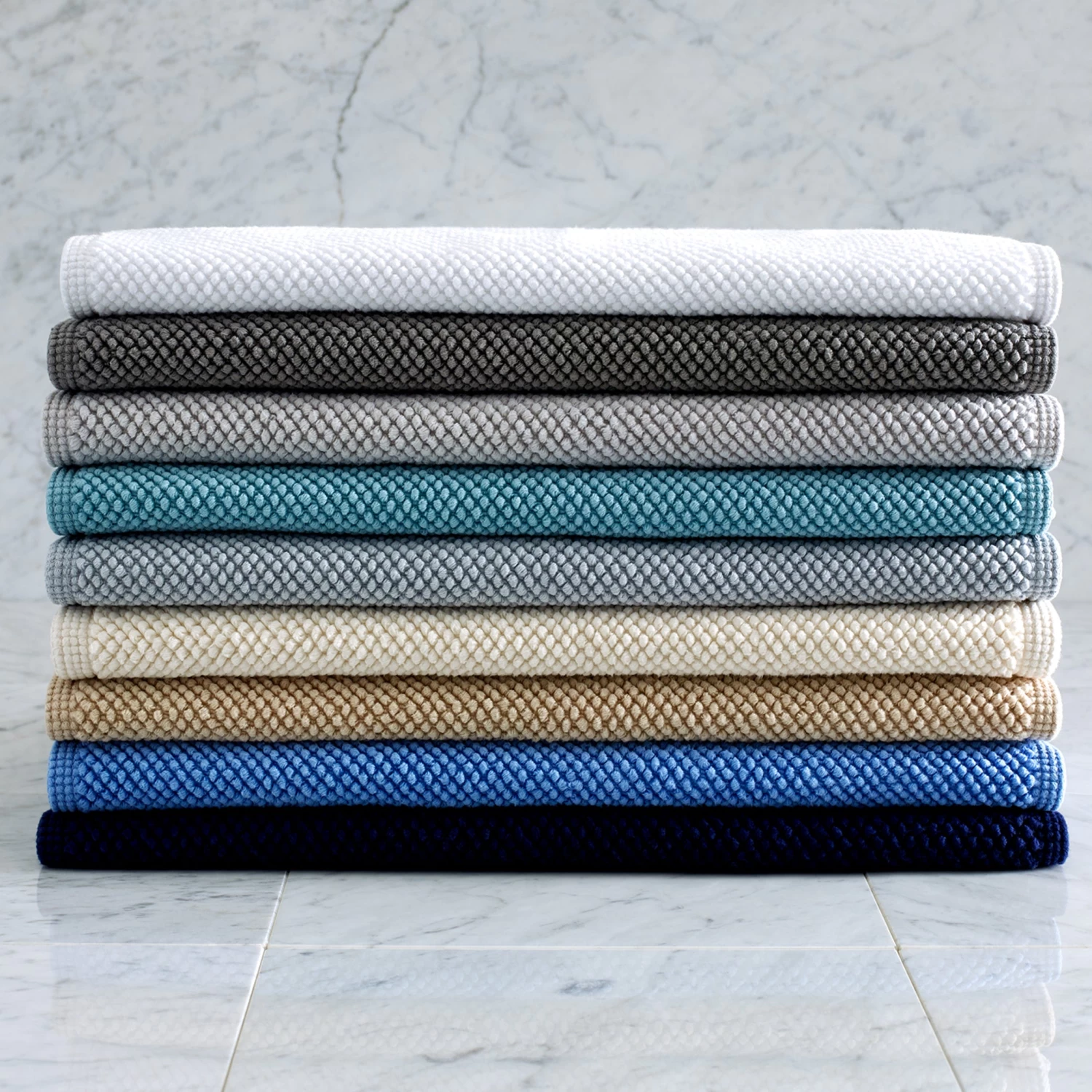 Colors: Azure, Cerulean, Charcoal, Dune beige, Ivory, Linen, Navy, Pool blue, Steel, Sterling silver, White