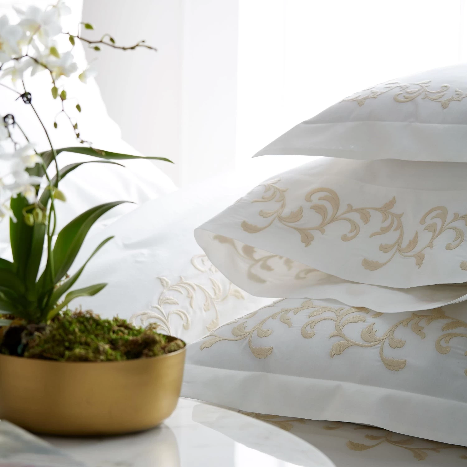 - Woven, finished, sewn and embroidered in Italy for Scandia Home.