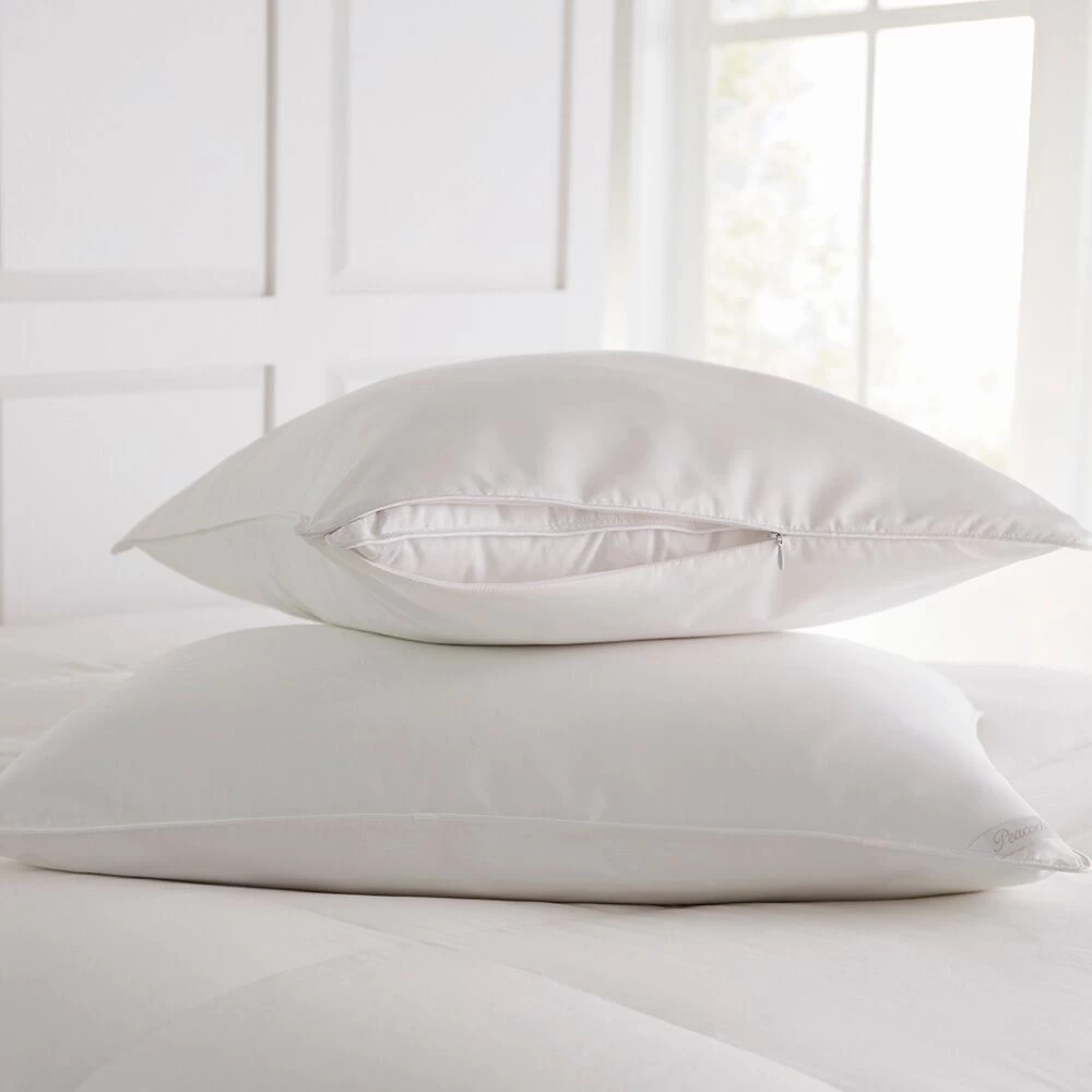 Care: Use pillow protector continuously to maintain 100-night warranty*. Spot clean with a gentle detergent such as Le Blanc’s Linen Wash. Wash your protector and pillowcase weekly to keep pillow clean, and extend its life. To freshen, place outside in direct sunlight. To clean, use a professional launderer, familiar with cleaning down products. DO NOT DRY CLEAN. Chemicals in dry cleaning break down the fluffy fibers of down.
