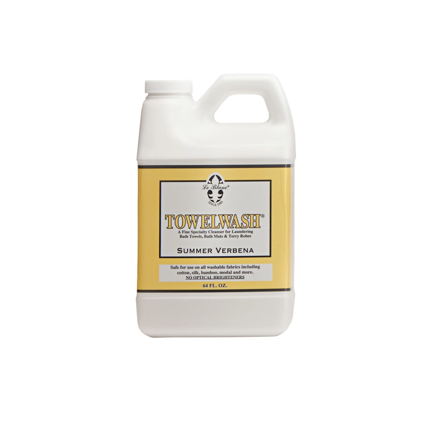 Safely launder your luxury bath linens, towels, robes, rugs, and mats without the use of added optical brighteners or softening agents. Low-sudsing Le Blanc Towel Wash protects fibers from drying out, becoming discolored and fading, ensuring your bath linens will remain luxuriously soft, absorbent, and strong, even after repeated washings. Softening agents coat yarns with chemicals that inhibit fibers from breathing, causing them to lose wicking ability while optical brighteners both fade and discolor towels.