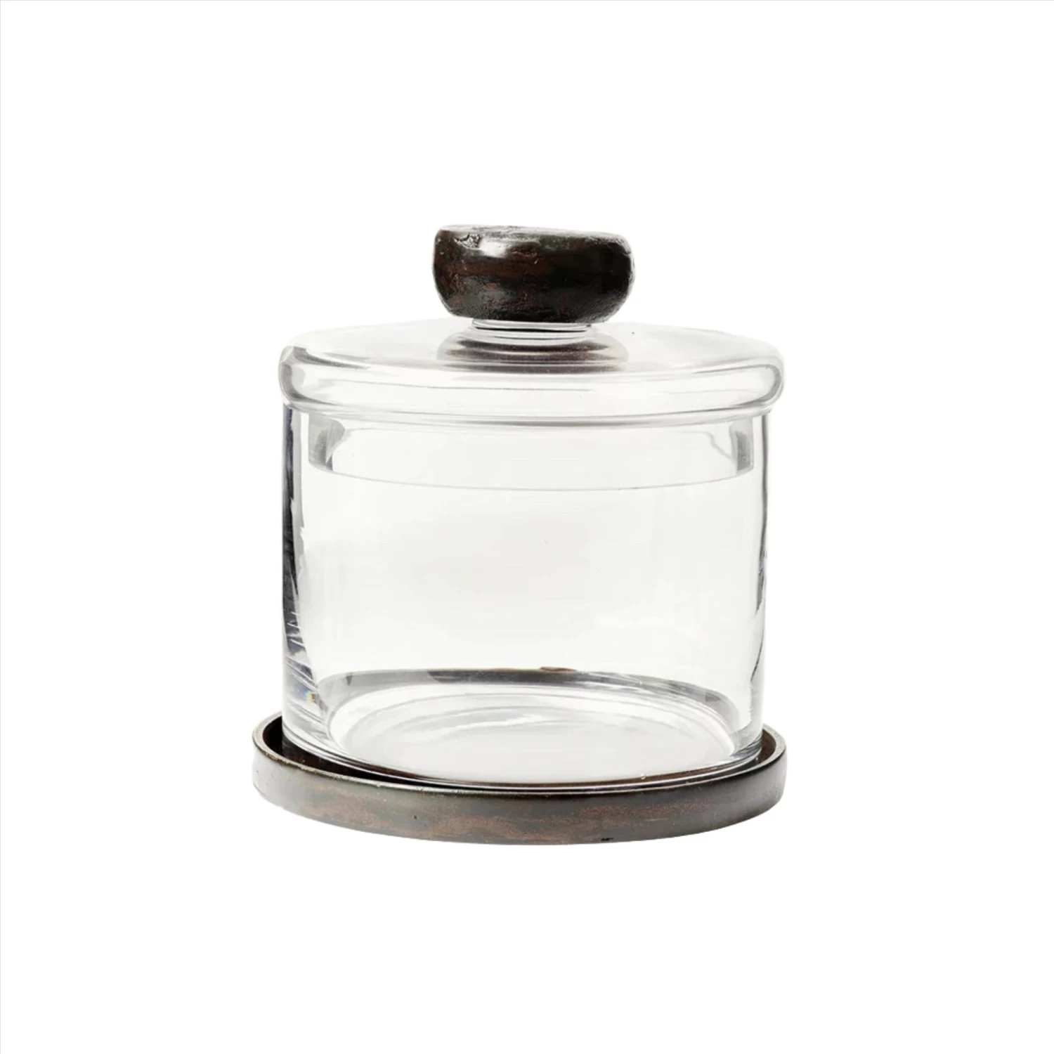 - Clear glass canister with lid featuring a wax cast top modelled after the tahona, or wheel, used in traditional tequila production