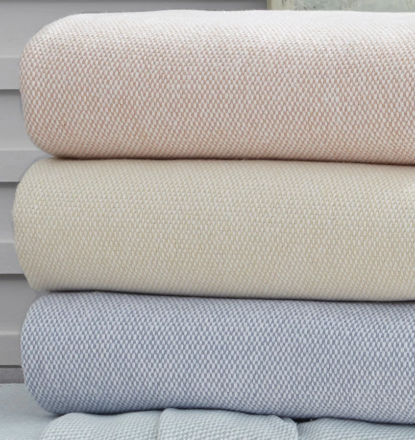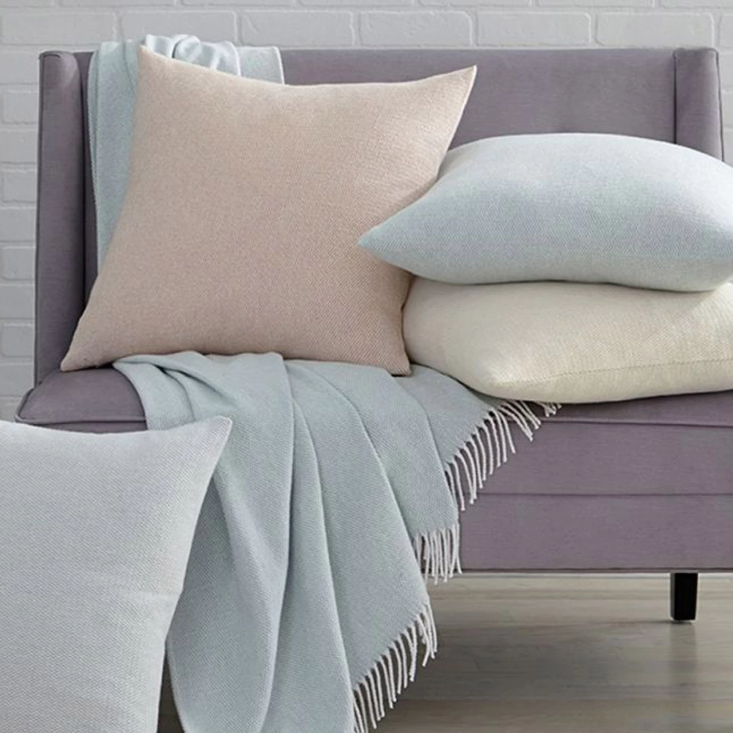 - Brushed cotton face with classic basket weave pattern throw blankets and decorative pillows. Soft hand. Simple and welcoming luxury.