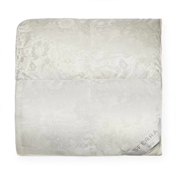 Sferra’s Utopia Eiderdown Comforters are created for those who can appreciate and truly want only the best. Luxurious pure German ivory silk jacquard ticking houses 100% Icelandic Eiderdown fill, the queen of all down fills, for the loftiest comforters to be found. Eiderdown is an extraordinary down that defies fill power. Collected from the Eider duck, this down is renowned as the most efficient, effective insulation against the cold. It is also relatively rare, and therefore is encased in the finest, most sumptuous silk ticking to prevent down loss and capture the outstanding airiness, resulting in the most indulgent, opulent and warmest down comforter available on earth.