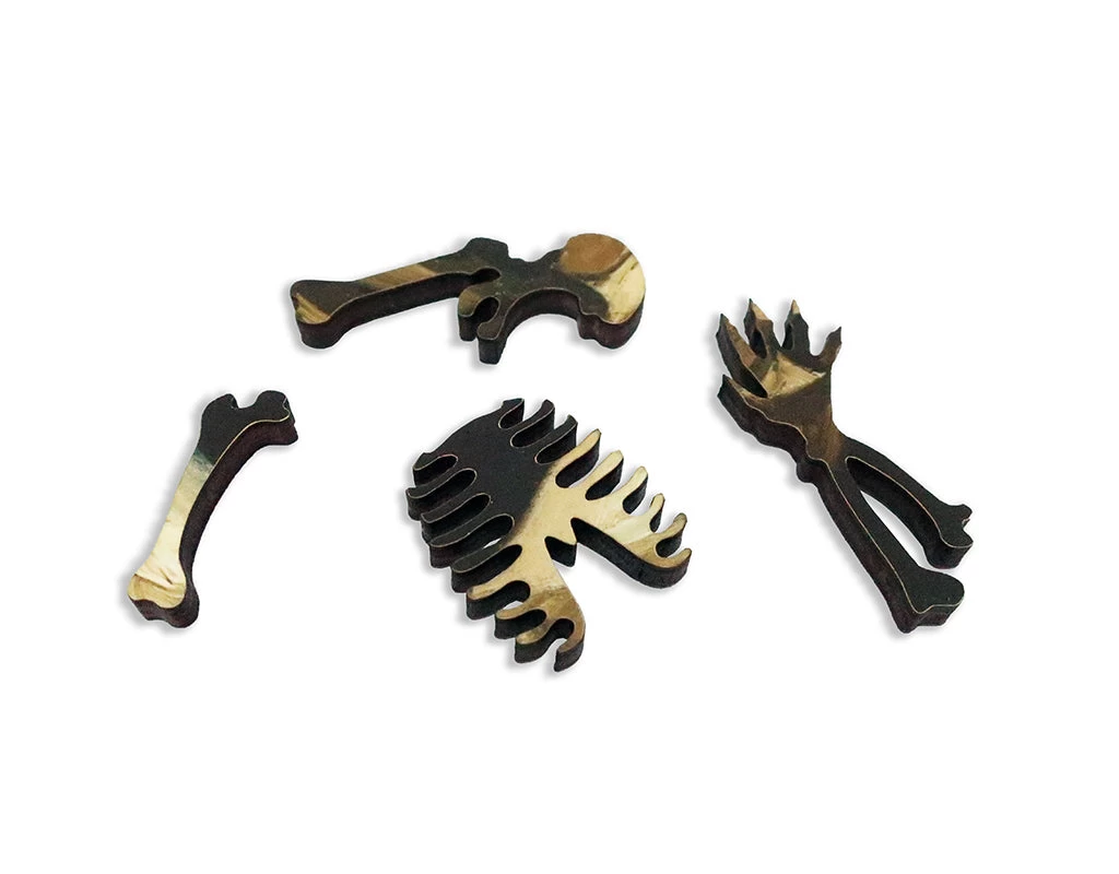 - Wooden jigsaw puzzle pieces packaged in a small blue box with magnetic clasp